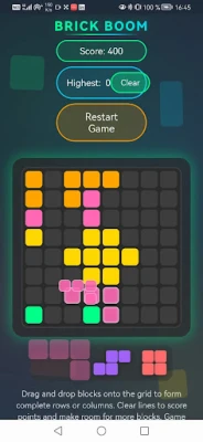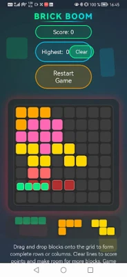 The premise of Brick Boom is straightforward: drag and drop various shaped blocks onto a grid to create complete rows or columns. Successfully filling an entire row or column triggers a satisfying "boom" effect, clearing the space and earning you valuable points. As the grid fills up, the challenge escalates, requiring you to think several moves ahead to maintain control.
