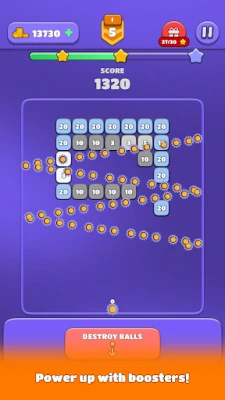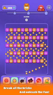 Each shot in the Bricks Breaker Puzzle Game unleashes multiple balls that move independently after being fired. Precision is key; players must carefully aim their shots, as the playing field shifts downward after each turn. If the blocks reach the bottom, the game ends, adding a thrilling sense of urgency to each move. This dynamic gameplay encourages players to think strategically and plan their shots wisely.
