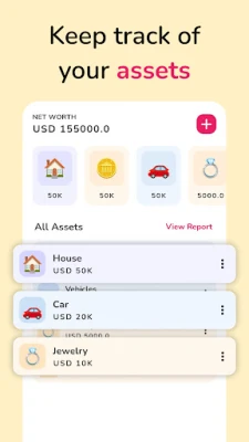 Manage your assets, including property, gold, investments, and other valuables, with the app's asset management feature. Whether it’s a home, a vehicle, or an investment portfolio, you can efficiently track your total net worth and stay informed about your assets.