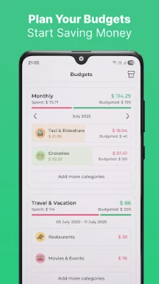 Planning your budget has never been easier. This app allows you to create monthly, annual, or custom budgets tailored to your specific needs. You can set flexible limits for shared expenses or specific categories, ensuring you stay on track. Whether you need a recurring budget or a special budget for an event or trip, this tool has you covered.