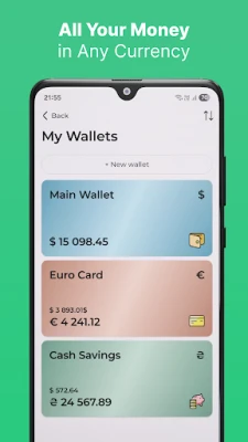 For those who deal with multiple currencies, this app offers robust wallet management. You can create various wallets in different currencies and view your total personal capital using either automatic or manual exchange rates. Additionally, you can set custom wallet priorities to focus on what matters most on your dashboard.