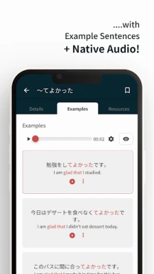 One of the standout features of Bunpro is its extensive library of over 100,000 hand-written example sentences. Each sentence is crafted to highlight unique nuances of the Japanese language, accompanied by audio recordings to enhance your listening skills. This rich resource allows learners to see grammar and vocabulary in action, fostering a deeper understanding of how to use them correctly in conversation.