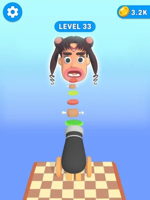 Once you’ve successfully navigated the course and built your towering burger, it’s time for the grand finale! Load your creation into a gigantic cannon and aim for the ultimate face smash. Will your character savor the delicious masterpiece you’ve crafted, or will they unleash a fiery rage if your stacking skills fall short? The outcome is in your hands!