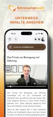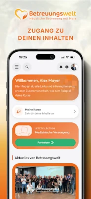 Through the app, you gain entry to the Betreuungswelt Academy, your digital reference guide and personal learning companion. The platform offers practical online courses featuring clear, step-by-step instructions that guide you seamlessly through all processes within the Betreuungswelt framework. These courses are enriched with insider knowledge and proven best practices drawn from years of experience in the caregiving sector.