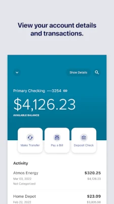 Security is a top priority. Log in with fingerprint or facial authentication on supported devices for an added layer of security. Additionally, you can enable Snapshot to check your account balances without logging in, providing convenience without compromising security.