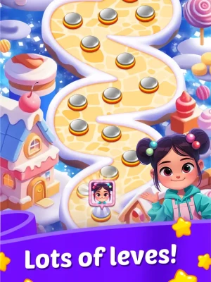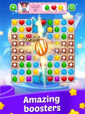 - Powerful Boosters & Sweet Combos: Utilize candy bombs, lollipop hammers, rainbow tiles, and more to conquer challenging levels.