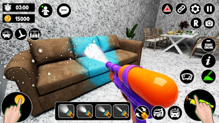 As you dive deeper into this 3D power wash game, you’ll have the opportunity to establish your own cleaning business. Respond to customer calls, offer top-notch home cleaning services, and earn rewards for your hard work. Before heading out from the pressure washing center, ensure you’re equipped with waterproof shoes, your corporate uniform, and all essential gear. These tools will enhance your gameplay and make your cleaning tasks more efficient.