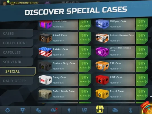 Are you ready to embark on your journey as a virtual collector? Download Case Chase today and immerse yourself in the ultimate inventory simulator for Counter-Strike 2 enthusiasts. Open cases, collect skins, and compete with fellow players—all while enjoying a fun and engaging gaming experience!