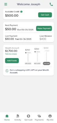 For customers in Louisiana, the CASH 1 Mobile App provides access to the Wealth Loan line of credit. This unique financial product not only offers a line of credit but also includes a savings account that earns interest up to 4% APY. This means you can build your wealth while managing your credit obligations.