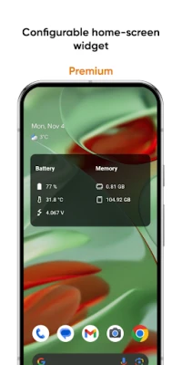 - Configurable Home-Screen Widget: Keep essential information about battery, memory, and more right on your home screen.