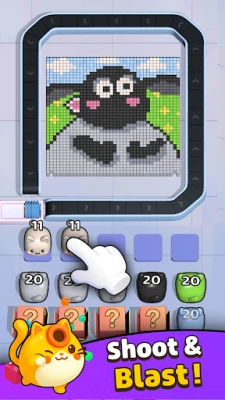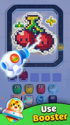 Your goal is to shoot and blast all the same colored pixel blocks from outside to inside. Successfully matching colors is key to winning each level, so keep your eyes peeled for the best opportunities to clear blocks efficiently.