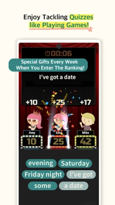 Get excited about learning! Participate in challenges that motivate you to achieve your language goals. Tackle quizzes that feel like games, making it easier to develop a habit of speaking English and enhancing your skills.
