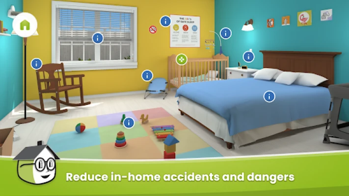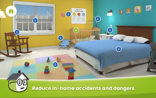 Navigate through five virtual rooms—the nursery/bedroom, kitchen, bathroom/laundry, living room, and outdoor/garage. Each space highlights specific safety concerns and offers effective mitigation strategies. This interactive exploration allows families to visualize potential hazards and learn how to address them effectively.