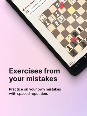 After each game, Noctie generates personalized chess puzzles and tactics based on your mistakes. Did you overlook a mate in one or two? No problem! You’ll receive a second chance to discover the correct move. These tailored chess exercises and puzzles are stored in your library for ongoing practice, ensuring continuous improvement.