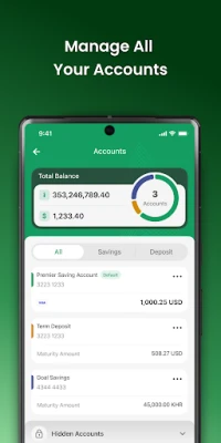 Need to open additional accounts in different currencies? Our app simplifies the process, allowing you to create Khmer Riel or US Dollar accounts, including Savings Accounts, Term Deposits, or Goal Savings. Achieve your financial goals faster and more efficiently.