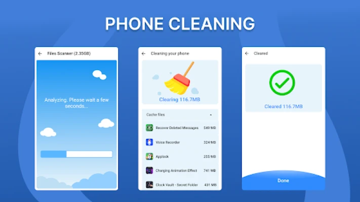 One of the main features of the Clean Phone app is its phone cleaning function. This feature effectively removes unnecessary files and data from your device, freeing up space and improving its overall performance. Whether it's temporary files, app caches, or duplicate files, this app can efficiently clean them all, leaving your phone running smoothly.