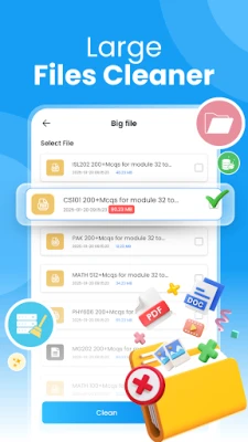 Managing large files such as high-resolution videos, documents, or downloads can be a daunting task. The **big file cleanup tool** within the **Cleanup Space app** organizes oversized files, allowing you to identify and manage them with ease. With just a few taps, you can clean up your storage and ensure that your device runs smoothly.