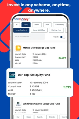 Stay on top of your investments with CNVMONEY's detailed performance tracking. The app provides comprehensive reports and graphs, offering up-to-date information on Net Asset Value (NAV) and returns over various time frames (1 year, 3 years, 5 years, etc.). This feature allows you to monitor your portfolio's growth and make adjustments as needed.