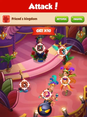 Get ready to spin the slots and discover your fortune! Each spin can yield valuable rewards, including attacks, steals, shields, and, of course, coins. Use your winnings to construct and expand your kingdom, progressing through higher levels as you accumulate wealth. Don’t forget to collect shields to safeguard your kingdom from rival attacks. Your goal? To become the ultimate kingdom master with the most impressive empire and the largest coin stash!