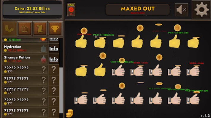 One of the unique aspects of Coin Flipper is the concept of inflation. Once you reach the milestone of 1 million coins, you can restart the game and utilize your inflation coins to acquire unique permanent upgrades. The more coins you collect, the more inflation coins you earn. You can choose to inflate early or wait to maximize your coin collection before making the leap.