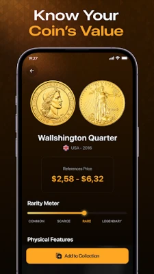 Stay ahead of the game with live market prices, detailed origin information, mintage years, and rarity scores. CoinSnap ensures you have the most up-to-date information at your fingertips, empowering you to make informed decisions.