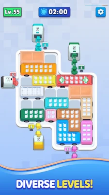 - Color Matching Challenge: Match buses with gates of the same color to fill them up and clear them from the board.