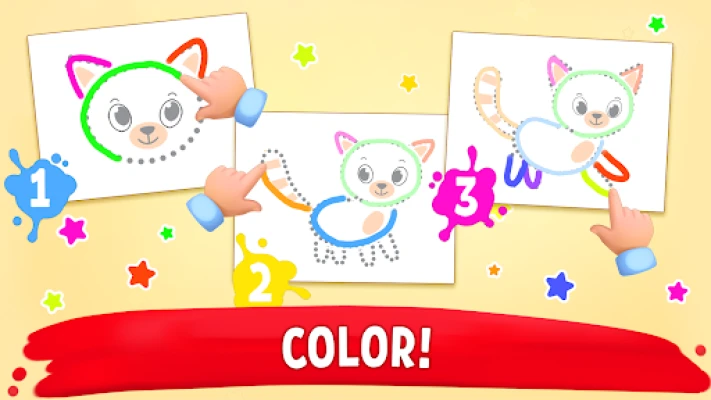 Art apps for babies and toddlers provide an excellent platform for creative exploration. With our coloring app, children can paint freely, using a palette of bright colors that stimulate their senses. The cheerful background music enhances the coloring experience, making it even more enjoyable for little ones. From the moment they open the "Painting and Coloring" application, children are drawn into a world of artistic adventure.