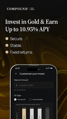 Compound Gold Bonds™️ is designed with user experience in mind. The app offers a seamless interface that allows you to invest securely, track your performance, and manage your portfolio—all in one convenient location. Whether you are a seasoned investor or new to the world of finance, the platform is intuitive and easy to navigate.