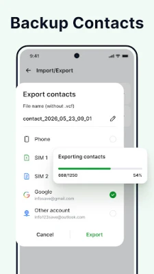 Backup, restore, or transfer your contacts effortlessly using the import and export feature. This functionality allows you to move contacts between devices securely, providing peace of mind that your important information is always safe.