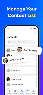 Need to find someone quickly? The app's search bar lets you locate any contact by name or phone number without the need to scroll through your entire list. This quick contact search feature saves you time and enhances your overall experience.