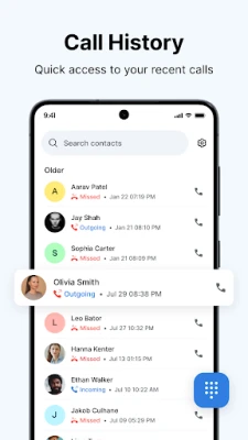 Stay organized with our call manager that provides a clear history of incoming, outgoing, and missed calls. Easily call back from recent logs and manage your call history with a simple interface. This feature allows you to track your communication effortlessly, ensuring you never miss an important call.