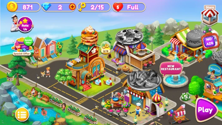 Discover over 70 themed restaurants, each offering a unique blend of exciting dishes and unforgettable culinary experiences in this thrilling restaurant game. Aim for the top of the cooking world chef rankings!