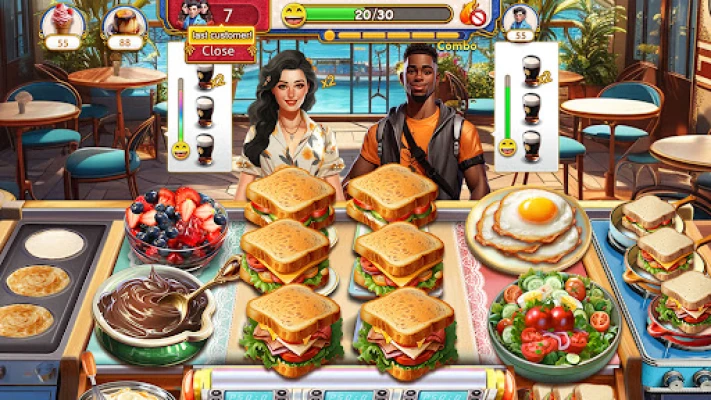Your culinary journey goes beyond cooking. Manage and expand your own restaurants! Earn coins to enhance your kitchen with cutting-edge equipment, including high-capacity fryers and lightning-fast stoves. A well-equipped kitchen leads to happier customers and bigger tips!