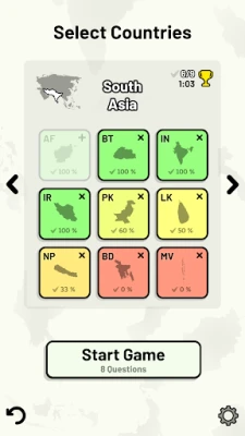 Our customizable quizzes allow you to select specific Asian countries and topics that interest you the most. This feature enables you to focus on areas where you want to improve. Additionally, past results for each country are displayed, helping you track your progress and identify strengths and weaknesses.