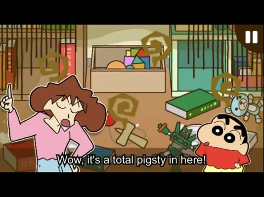 From household chores like cleaning and laundry to fun outings such as shopping and pet care, the app offers a wide range of activities. Even if children are unsure of how to perform these tasks, they can easily learn through gameplay with Shin-chan, making the experience both educational and entertaining.