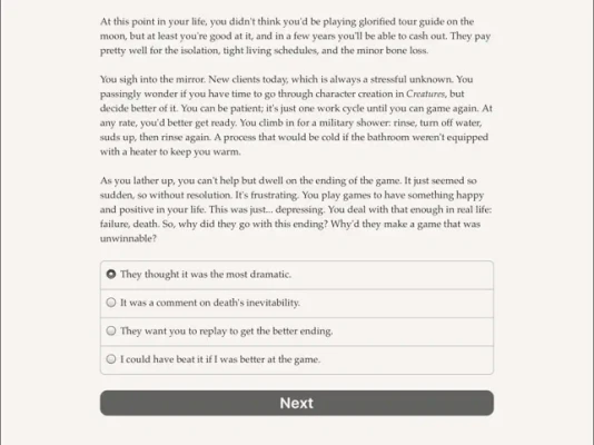 Living on the moon can feel isolating, overwhelming, and exhausting. In such a stark environment, video games have always provided a much-needed escape, offering a glimpse into a happier, more fulfilling life. However, it can be incredibly frustrating when the game you’ve invested your time in concludes on a disappointing note. Fortunately, a new opportunity arises with the arrival of a group of game designers. This is your chance to engage in meaningful discussions about art, inspire creativity with the breathtaking beauty of outer space, and connect with a specific designer to uncover the ending you’ve always desired.