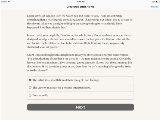One of the most compelling aspects of Creatures Such as We is the opportunity to bridge the gap between game players and designers. Engage in thoughtful discussions that explore the nuances of game development and player experience. Your choices will shape the dialogue, fostering a greater understanding of the creative process behind the games we love.