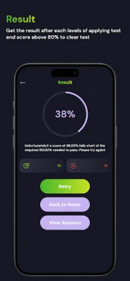 After completing each level, you’ll receive a detailed result that indicates whether you’ve achieved an impressive score of 80% or above to clear the test. This feedback helps you understand your strengths and areas for improvement.