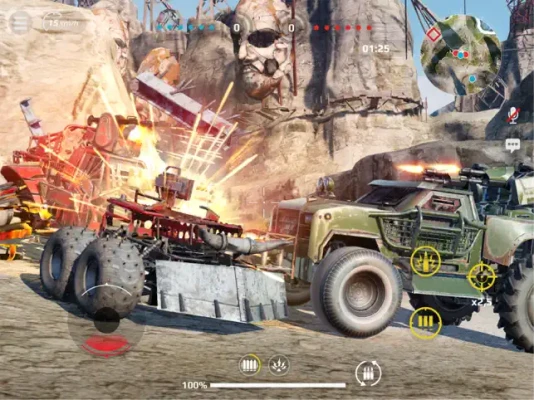 Crossout Mobile boasts breathtaking graphics that bring the post-apocalyptic world to life. Experience spectacular effects and explore beautifully rendered landscapes within the gaming arenas. Each battle arena presents unique challenges, allowing you to gain a tactical edge over your opponents.