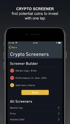 Finding the right investment opportunities has never been easier. With just one click, you can utilize BitScreener's advanced screening tool to identify potential coins based on various criteria, including: