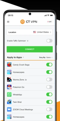 With CT VPN, you have the flexibility to choose which applications utilize the secure tunnel. This means you can run certain apps through the VPN while allowing others to function normally. This customization ensures that you maintain optimal performance for your essential applications while enjoying the benefits of enhanced security.