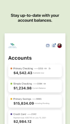 With mobile banking, you can easily check balances on your checking, savings, certificates, loans, and credit cards. This feature allows you to stay informed about your financial status without needing to visit a physical branch. Whether you're at home or on the go, accessing your account balances is just a few taps away.