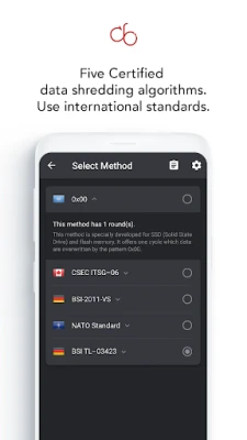 The CB Innovations android data eraser app is made in Germany and follows the highest data erasure standards, including NATO, German BSI, and Canadian CSEC. It provides a reliable and secure method for users to shred their data, and once data is wiped with this app, it cannot be recovered.