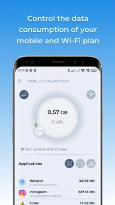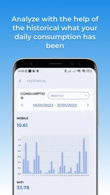 Not only does our app keep tabs on your mobile data consumption, but it also tracks your Wi-Fi usage. This dual functionality ensures that you have a complete overview of your data habits, whether you are connected to a mobile network or a Wi-Fi connection.