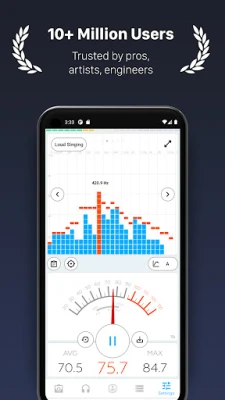 The app features a sophisticated spectrum analyzer that utilizes Fast Fourier Transform (FFT) and bar graphs to display real-time frequency data. This functionality is particularly beneficial for musicians and sound engineers who need to conduct frequency analysis and musical tests. Users can easily identify predominant frequencies, making it an invaluable tool for sound design and mixing.
