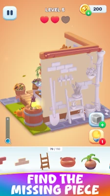 Decolore boasts a multitude of captivating puzzle levels, with new ones continuously added to ensure you never run out of content. Each level unfolds a unique story, and as you progress, the puzzles become more detailed and enjoyable. From vibrant greenhouses to cozy sewing rooms, and even playful kittens, dive into this aesthetic universe as you position each décor item perfectly.