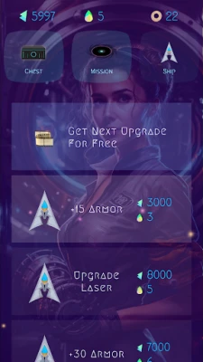 Your adventure begins with a basic ship equipped with a single weapon. As you progress, gather blue Energy Coins to upgrade your laser and enhance your combat capabilities. Keep an eye on the blue circle indicator located in the right corner of your screen; it tracks your progress toward the next upgrade level. Additionally, collect Green Health Coins to restore your ship's health and Red Coins to generate a powerful shield that can obliterate enemy lasers and ships—except for the formidable bosses!