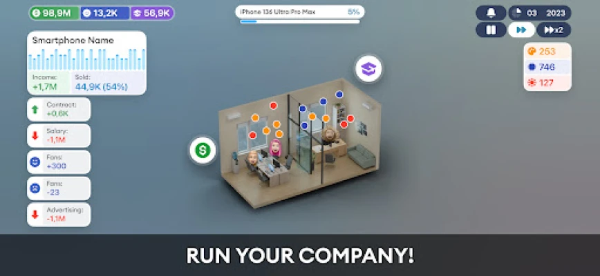 In the realm of technology, versatility is key. Whether you’re developing smartphones, laptops, or gaming consoles, each category offers a 3-D editor to customize your products. Design the operating system by crafting the kernel and user interface, while also tracking active users. With over 10,000 component combinations available—ranging from CPUs and screens to cameras and packaging—every decision you make will influence your product's price, popularity, and overall rating.