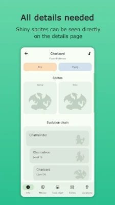 For collectors and enthusiasts, shiny Pokémon hold a special allure. Dex Tracker enhances your experience by displaying shiny sprites directly on the details page. This feature allows you to quickly identify shiny variants and appreciate the unique color differences without any hassle.