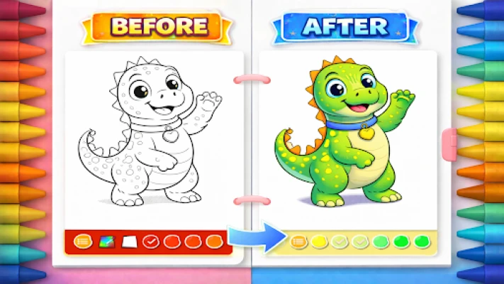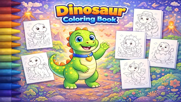 Children can explore a vast library of friendly dinosaur pages, designed with simple controls and vibrant, kid-friendly palettes. This user-friendly interface ensures that even the youngest artists can easily navigate and enjoy their coloring journey.
